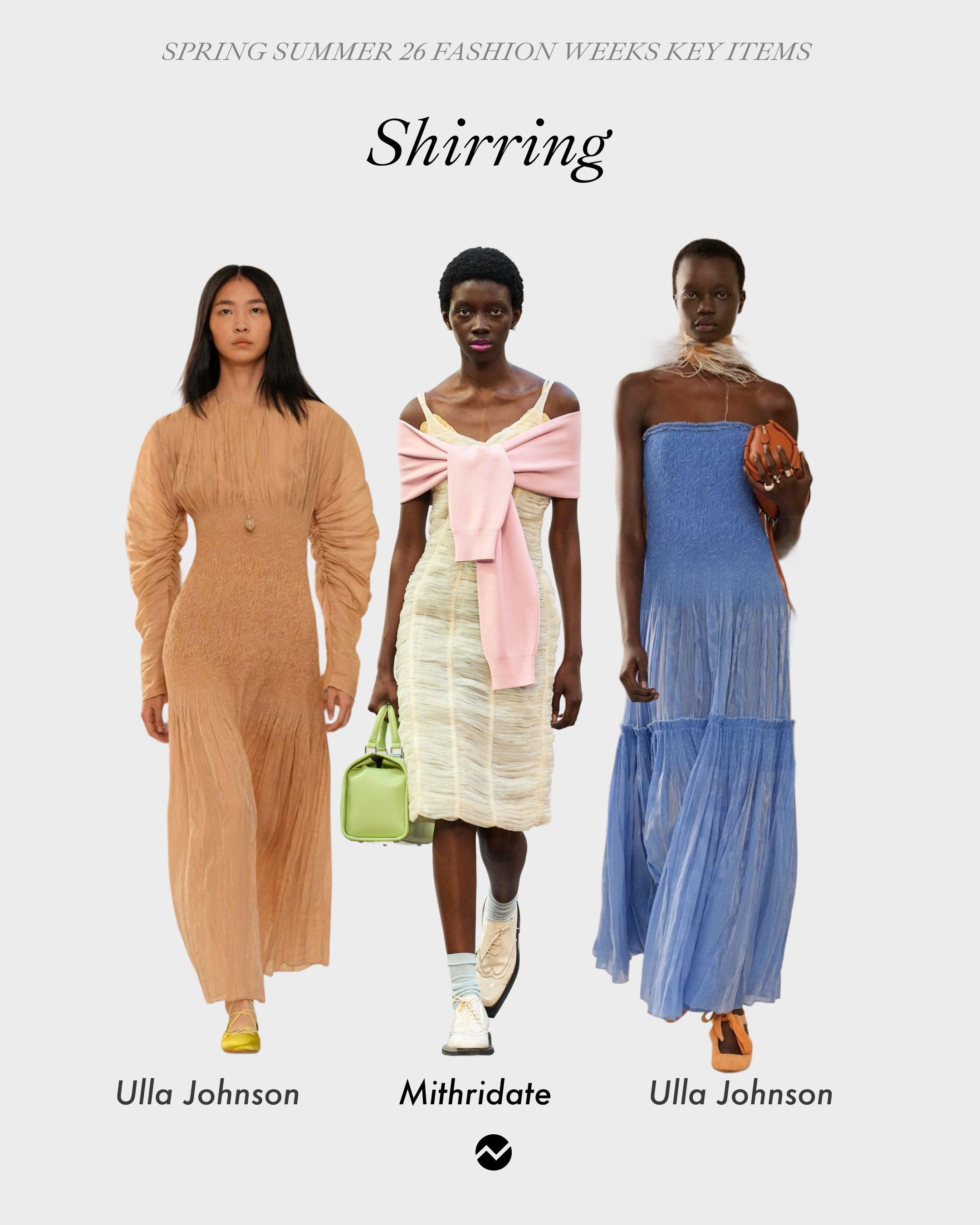 It’s a playful way to tickle up key items.Shirring isn’t just a pretty detail — it’s a design element. From tops to dresses, it blends comfort, style, and craftsmanship into one season- defining trend.