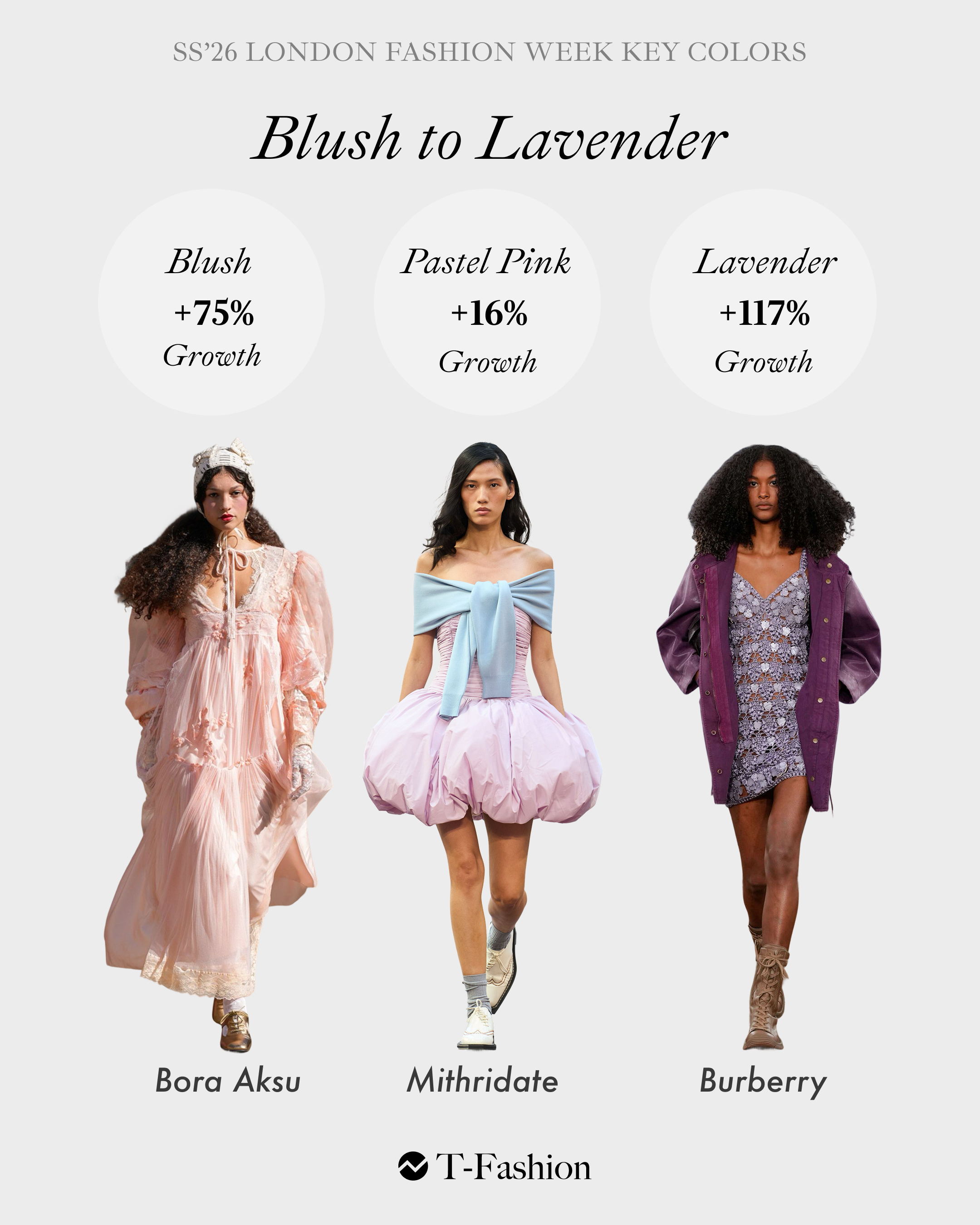 The color story for London this season highlights a balance between grounding neutrals and expressive pastels: